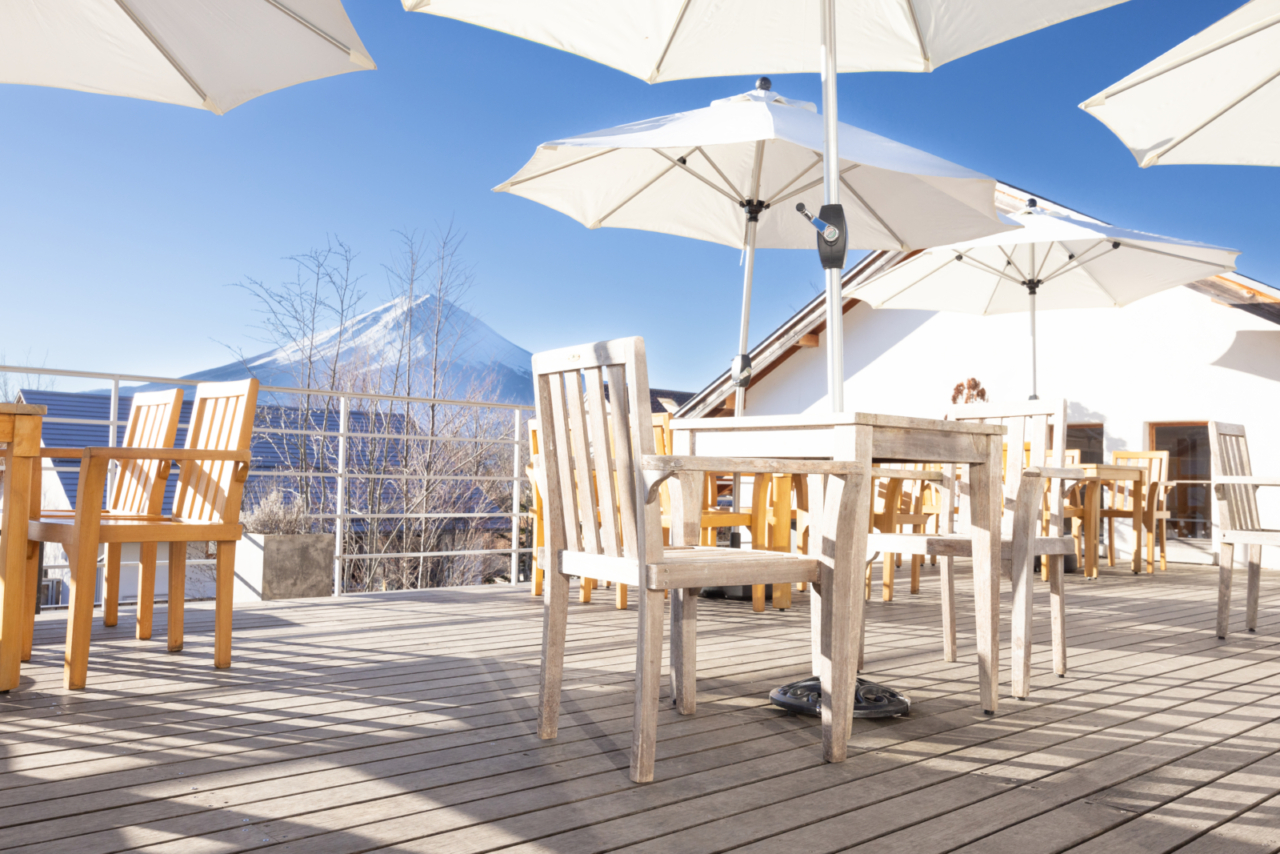 テラス席からは雄大な富士山を間近に望みながら、香り豊かなカフェラテや本格的なピッツァを楽しめる、落ち着いた雰囲気のお店です。焼きたてのクロワッサンやスイーツのほか、アルコールやアラカルトも充実。店内は40席あり、テラス席はペット同伴も可能です。