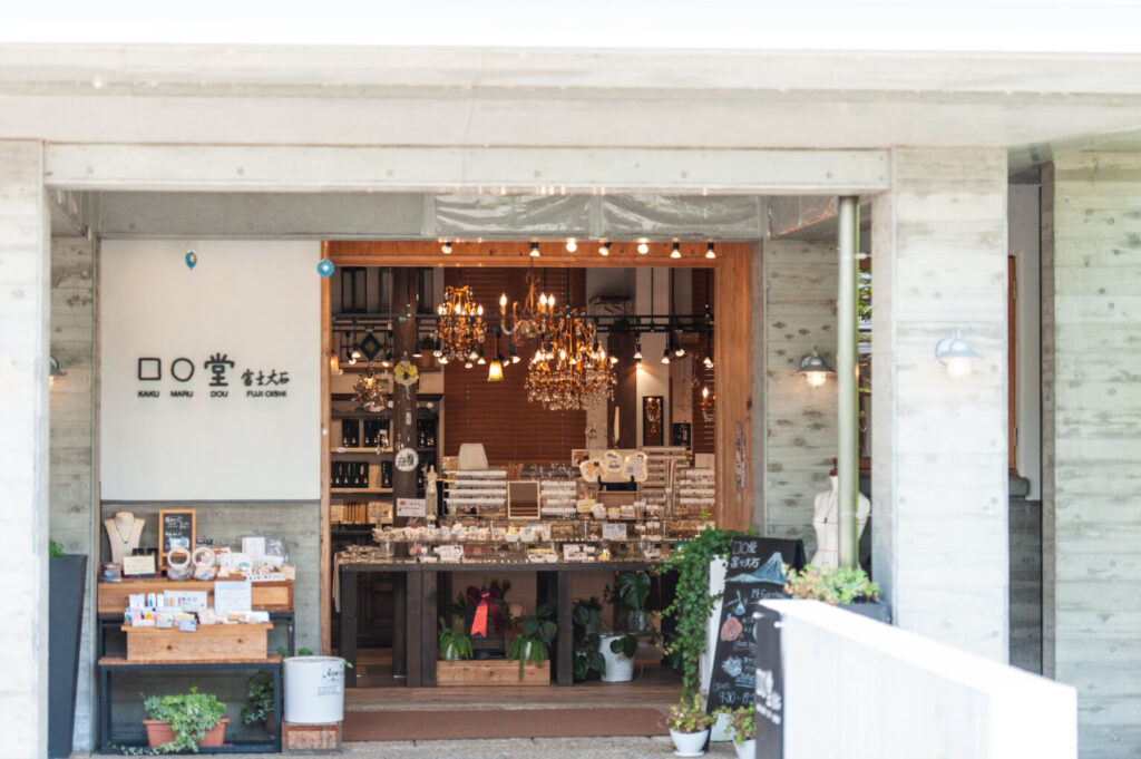 店内はアンティークな雰囲気に包まれ、天然石やガラスなど多彩な素材を使ったアクセサリーや雑貨が並びます。水晶加工の産地として知られる山梨では、今も水晶のアクセサリーが人気。可愛らしいガラス製のねこ玉やいぬ玉をはじめ、ガラスや天然石を使ったアクセサリーが豊富に揃い、雑貨やパワーストーンも楽しめます。富士山モチーフの根付や箸置きも人気です!